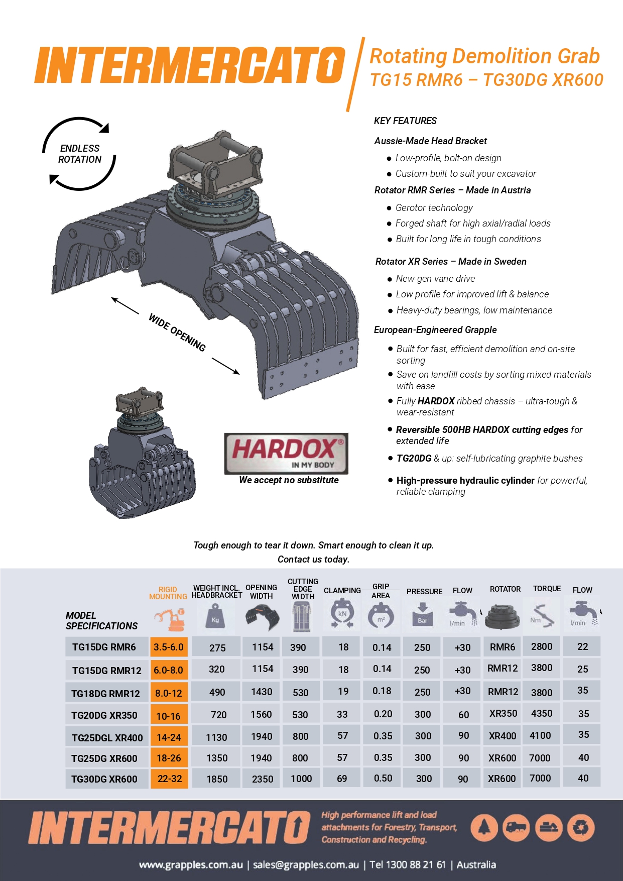 From demolition and waste handling to recycling and skip bin operations, Intermercato grabs are engineered to handle concrete, timber, brick, metal—anything you throw at them.