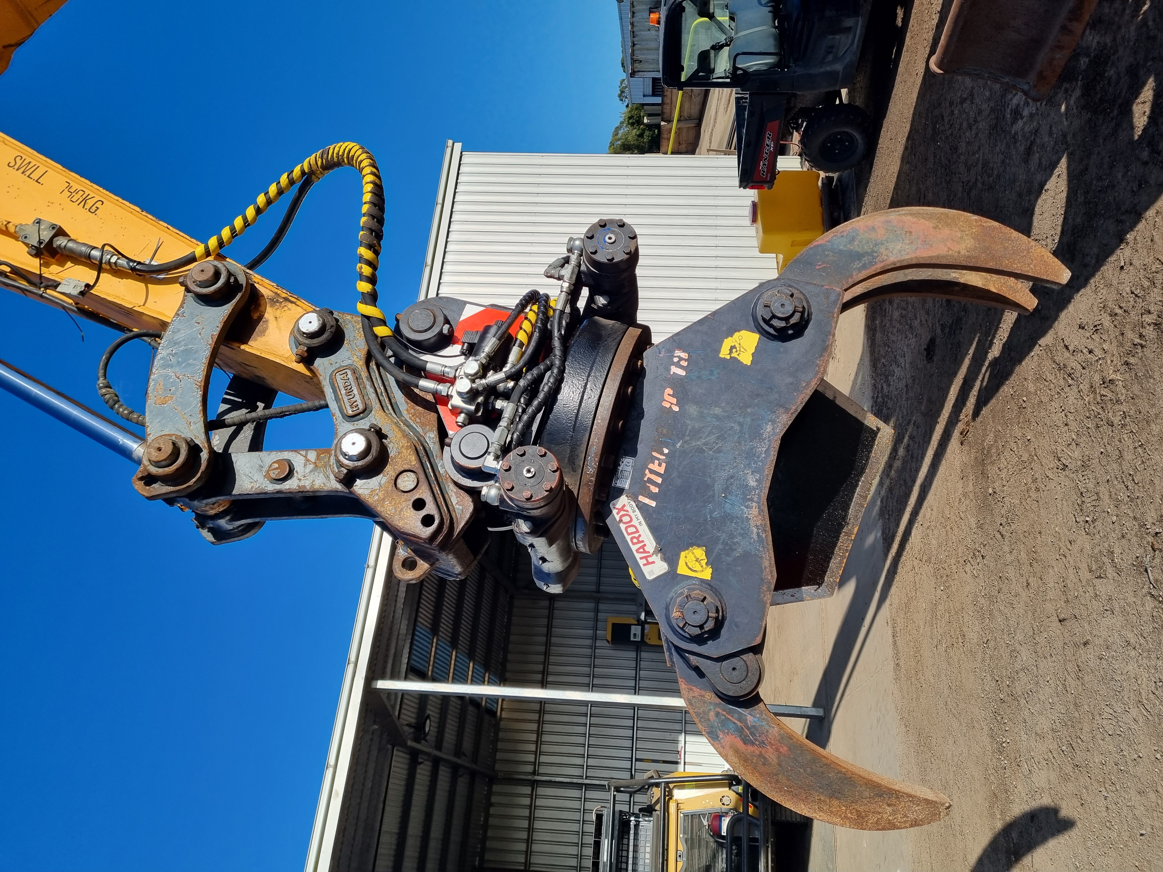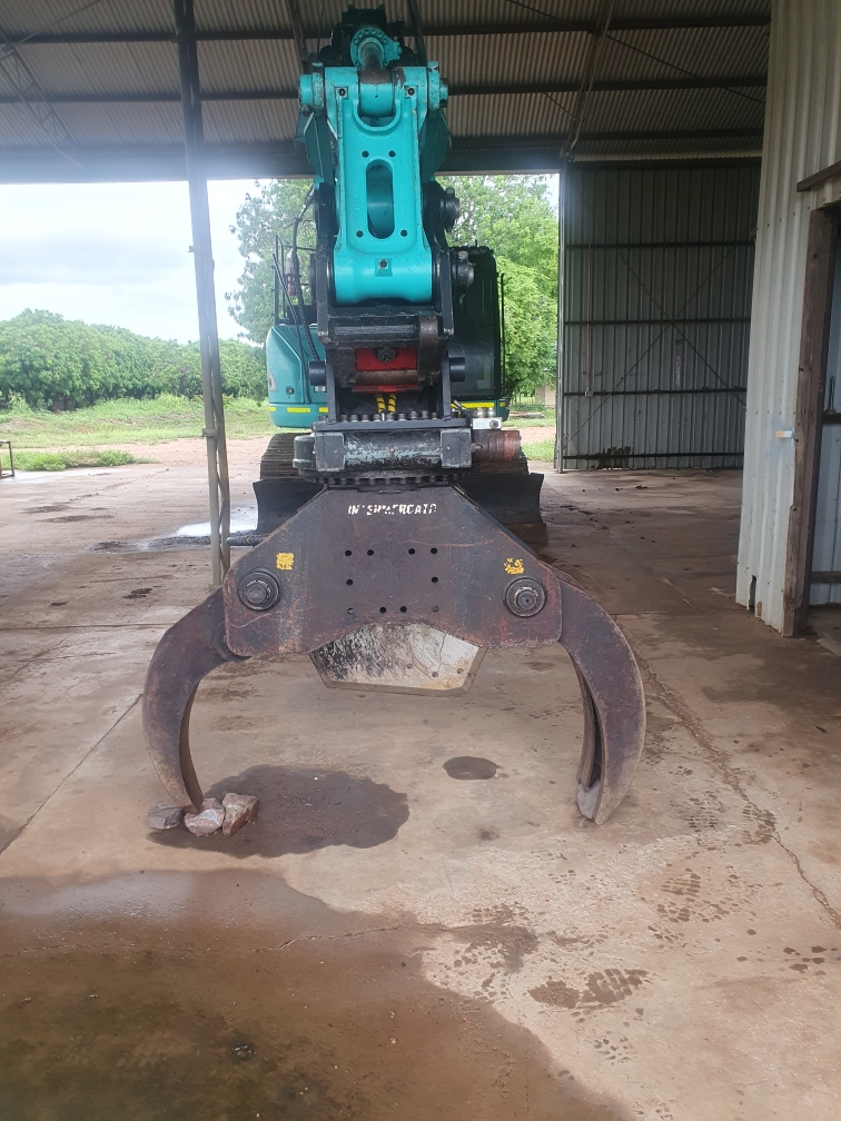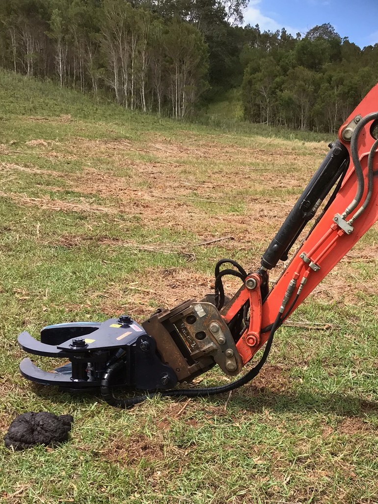 Excavator shear for selective limb removal - suitable for pruning avocado macadamia trees.