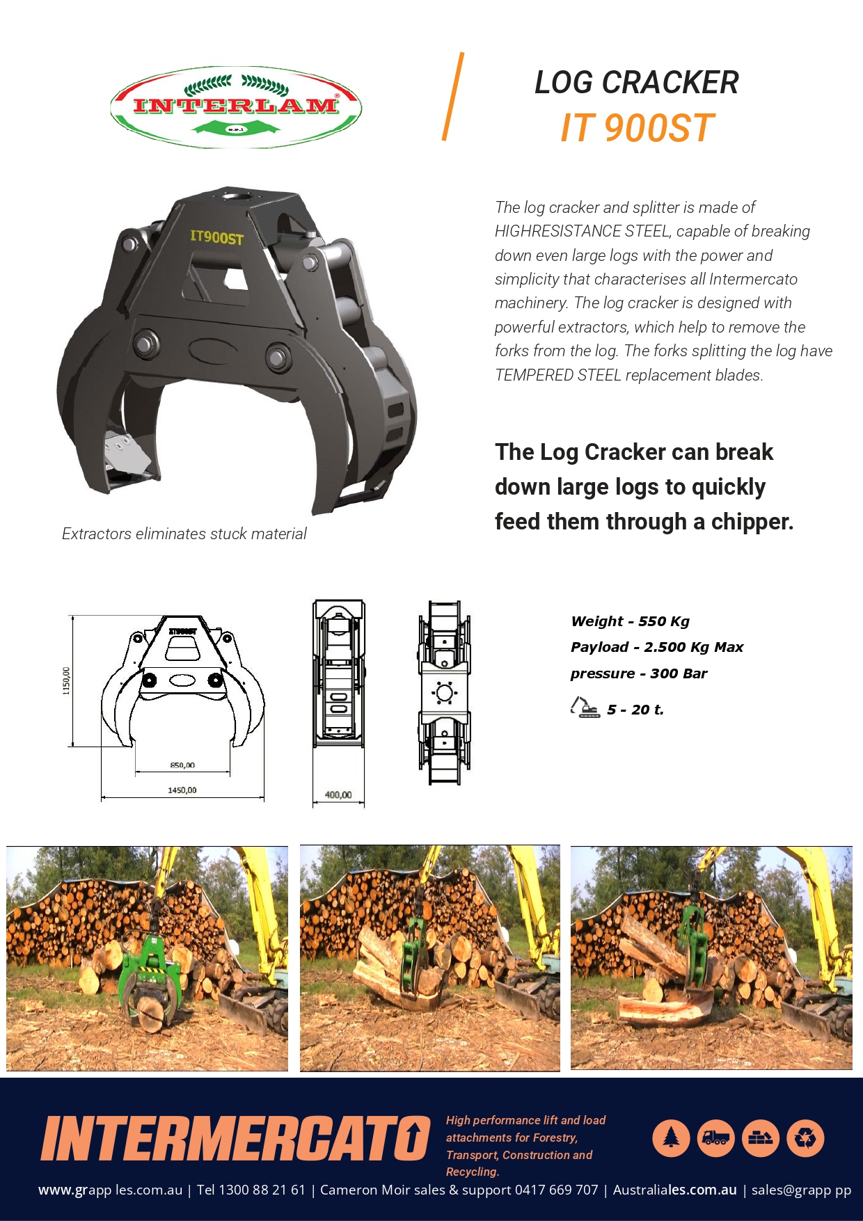 The Interlam IT900ST Log cracker and splitter is made from high resistance steel, capable of breaking down large logs with the power and simplicity typical of all our machines. The log cracker is designed with powerful extractors, which help to remove the forks from the log. The forks that split the log use tempered steel blades, which can be replaced as needed. The log cracker really is the perfect solution for down-sizing large logs.
